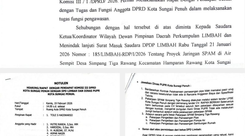 L.I.M.B.A.H menolak keras notulen bodong tersebut dan memastikan bahwa seluruh bukti kejanggalan administrasi dari DPRD Kota Sungai Penuh ini akan dilampirkan dalam laporan resmi ke Majelis Kehormatan Dewan, Kejaksaan Agung RI, dan KPK di Jakarta. Biarkan hukum yang menguliti siapa saja aktor yang bermain di balik mangkraknya air bersih untuk rakyat miskin Sungai Penuh.
