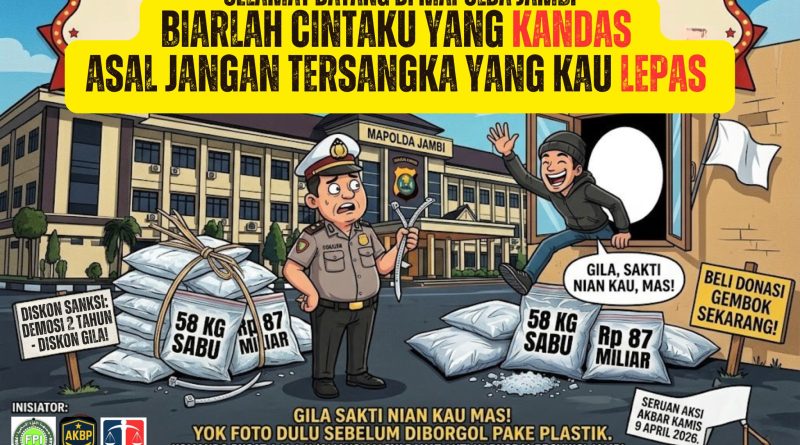 Sore ini, Kamis (9/4/2026) pukul 15.00 WIB, Gerbang Utama Mapolda Jambi tidak hanya akan menjadi saksi bisu kemarahan warga, tetapi akan menjadi lautan manusia yang melantunkan dzikir dan selawat. Aksi damai yang dimotori oleh Aliansi Masyarakat Anti Narkoba (A.M.A.N) bersama Front Persaudaraan Islam (FPI), Perkumpulan L.I.M.B.A.H, AKBP, dan berbagai paguyuban ini membawa satu misi mulia: Menyelamatkan Jambi dari “Limbah Iblis” narkotika dan mendoakan Aparat Penegak Hukum (APH) agar segera bertaubat.