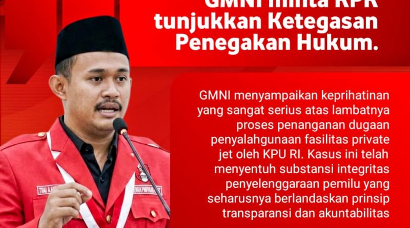 “Gerakan Mahasiswa Nasional Indonesia (GMNI) menyampaikan keprihatinan yang sangat serius atas lambatnya proses penanganan dugaan penyalahgunaan fasilitas private jet oleh KPU RI. Kasus ini telah menyentuh substansi integritas penyelenggaraan pemilu yang seharusnya berlandaskan prinsip transparansi dan akuntabilitas.”