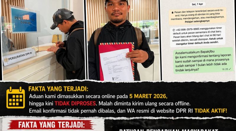 JAKARTA — Kinerja pelayanan publik di lingkungan Dewan Perwakilan Rakyat Republik Indonesia (DPR RI) kembali menuai kritik. Kali ini, sorotan tertuju pada lambannya penanganan pengaduan masyarakat yang dinilai tidak profesional dan tidak transparan.